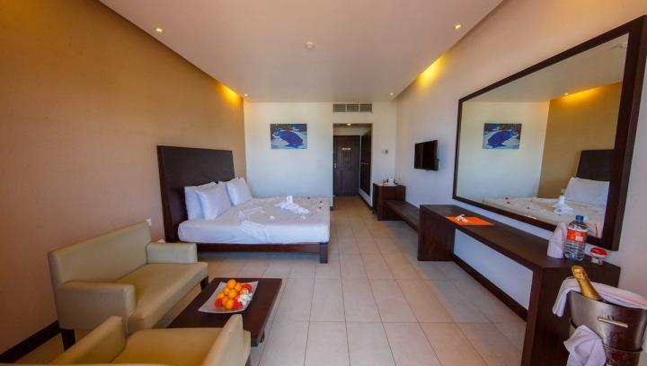 Hotel je poznat po modernom dizajnu, direktnom pristupu peščanoj plaži i bogatom sadržaju, što ga čini idealnim za opuštajući odmor porodica i parova.