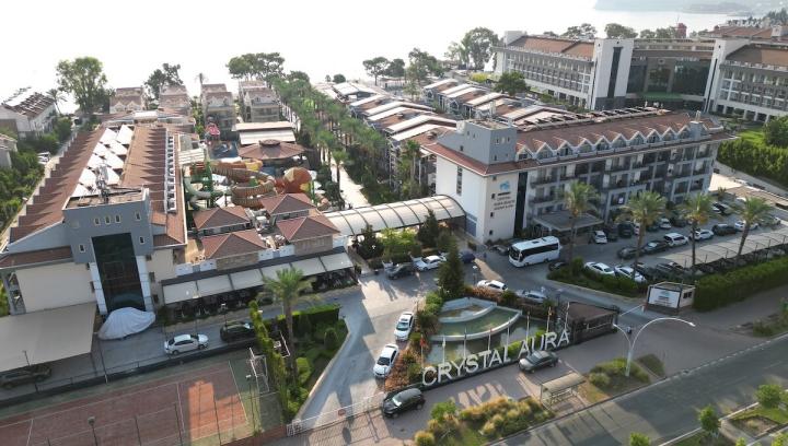 Crystal Aura Beach Resort & Spa se prostire na 29.000m2. Resort je otvoren 2004. godine, a poslednji put renoviran 2015. Ukupno ima 507 soba (od čega 339 standardnih, među kojima su 4 za osobe sa posebnim potrebama, 84 standardne sa krevetima na sprat, 22 family sobe, 36 honeymoon apartmana i 26 economy soba.)