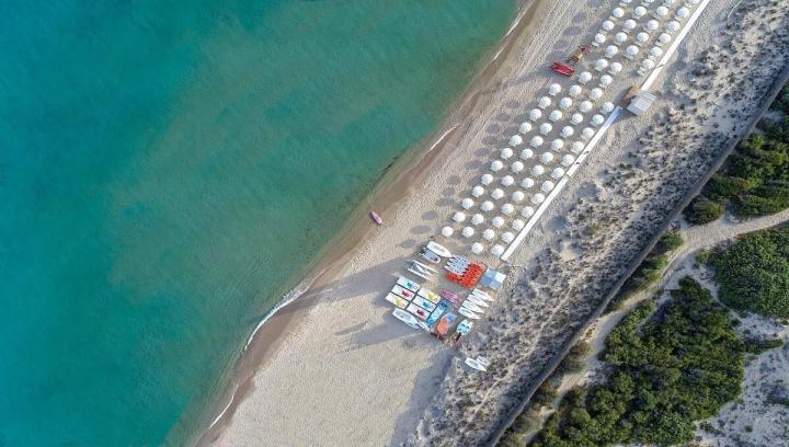 Plaža hotela je duga peščana sa postepenim ulaskom u more, smeštena direktno ispred kompleksa i lako dostupna pešice kroz uređene staze. Gostima su na raspolaganju ležaljke i suncobrani.