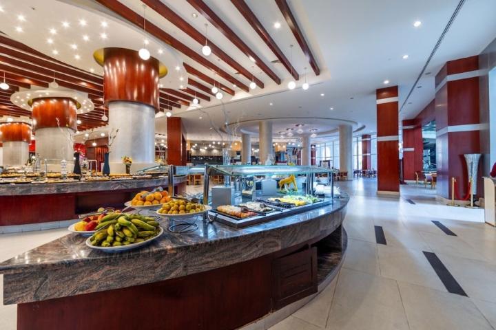 Usluga je All Inclusive, na bazi samoposluživanja (izbor više jela po hotelskim pravilima). Na raspolaganju su Aurora, Stardust i TAU restorani. U okviru hotela nalazi se nekoliko barova: Infinity, Xi, Pause i Stamina. U koncept su uključena lokalna bezalkoholna i alkoholna pića.