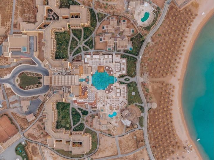 Hotel zauzima površinu od 10 kvadratnih kilometara, arhitektura ovog hotela inspirisana je hramom Karnak. Sastoji se od trospratne glavne zgrade i u ponudi ima 326 smeštajnih jedinica. Preporučuje se porodicama sa decom.