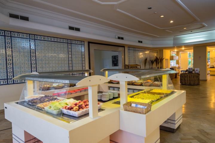 Usluga u hotelu je All Inclusive - doručak, ručak i večera (samoposluživanje - izbor više jela po hotelskim pravilima). U konceptu su užine, lokalna alkoholna i bezalkoholna pića. Hotel u ponudi  glavni restoran, nekoliko barova - Pool i Central bar