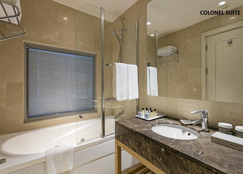 Colonel suite ima površinu 120m², nalazi se u glavnoj zgradi i ima pogled na more. Sastoji se od dnevne sobe sa garniturom za sedenje, spavaće sobe sa francuskim ležajem, dečije sobe, kupatilom za odrasle sa jacuzzi-jem, kupatilom sa tuš kabinom i balkonom.